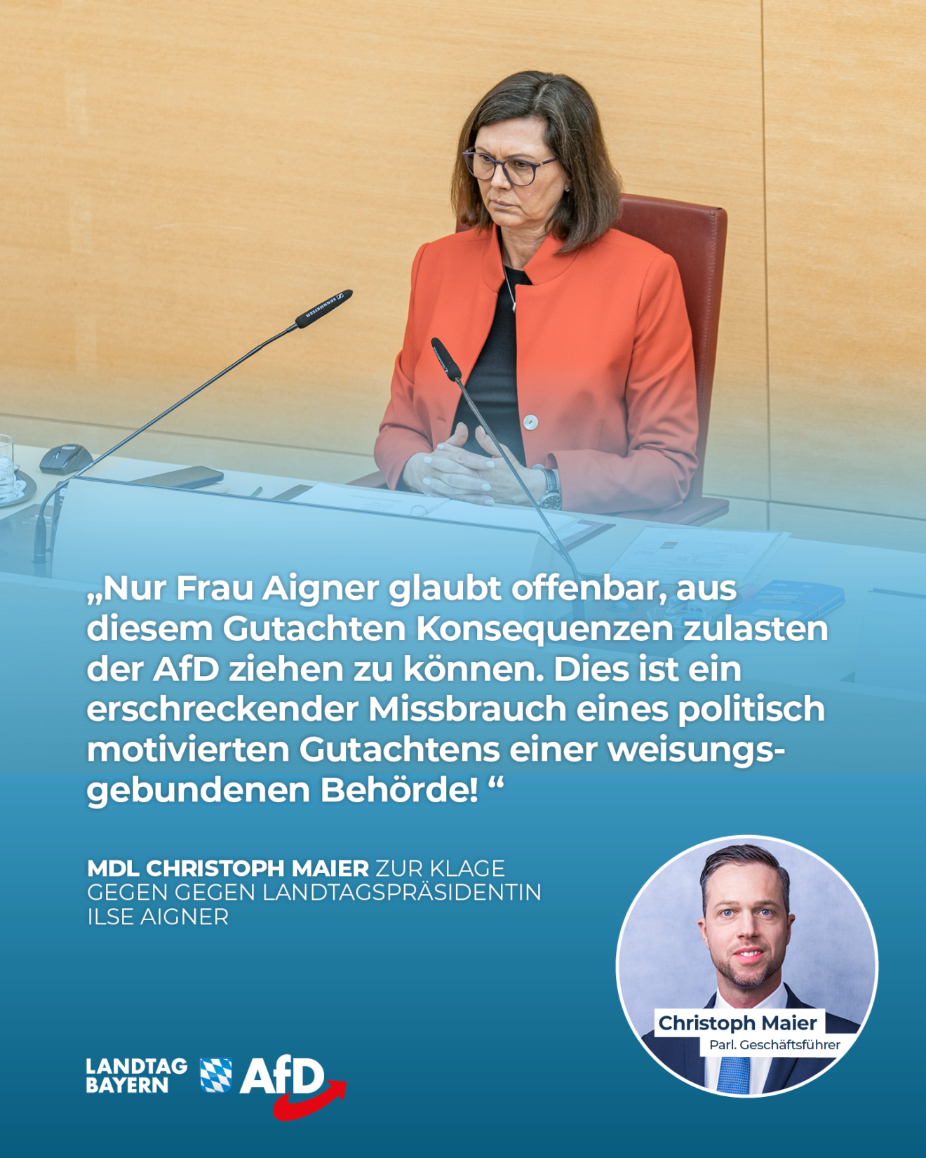 AfD-Fraktion klagt gegen Landtagspräsidentin – Ilse Aigner missbraucht ihr Amt zum politischen Meinungskampf!
