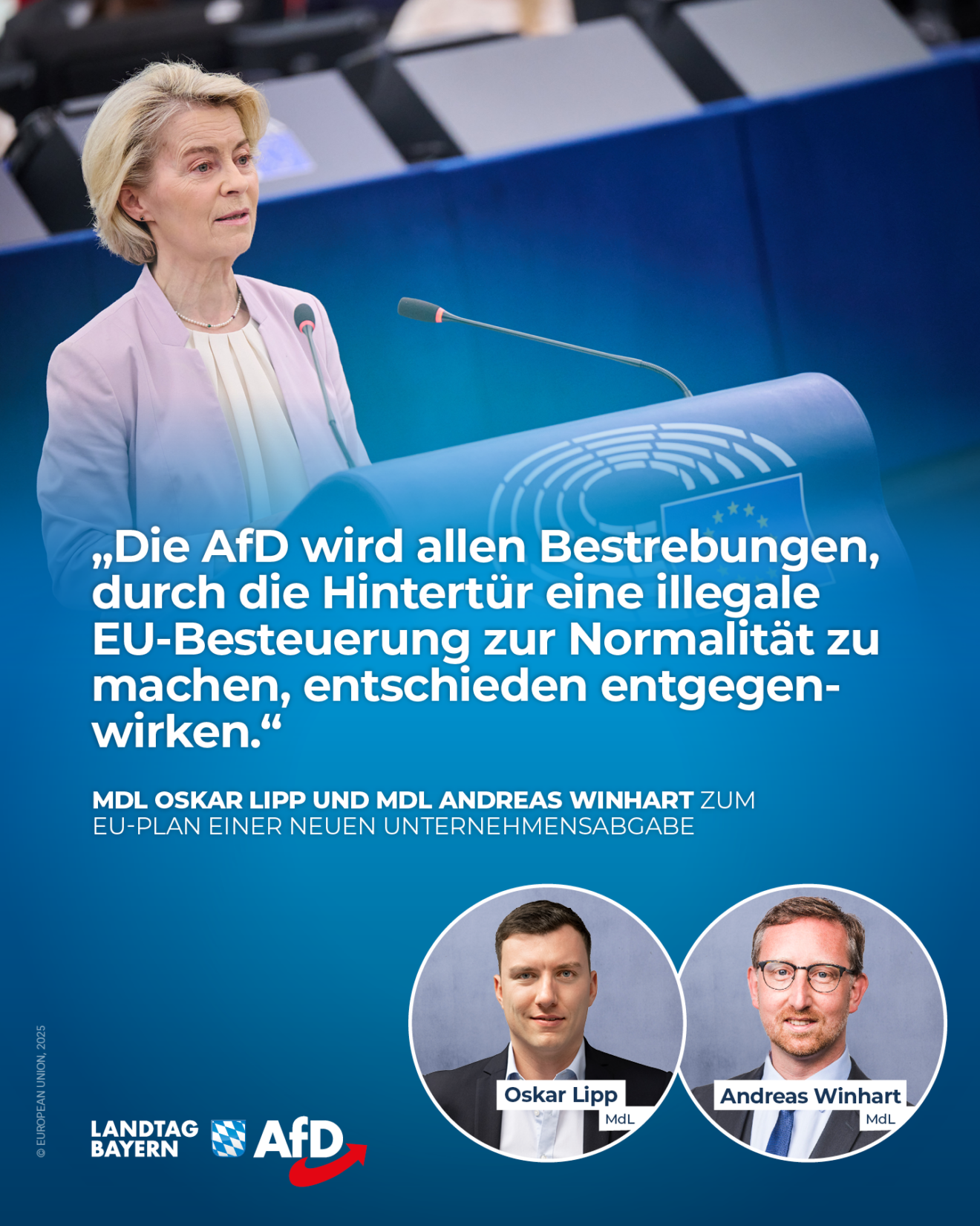 Brüssel plant neue Steuern zur Tilgung von Corona-Schulden – und die deutsche Wirtschaft soll zahlen. Die Europäische Kommission hat eine neue Unternehmensabgabe vorgeschlagen, um die Rückzahlung der Schulden aus dem Corona-Wiederaufbaufonds zu finanzieren. Die EU-Kommission opfert das Rückgrat unserer Wirtschaft, um ihre Schuldenpolitik zu finanzieren. Anstatt Steuergerechtigkeit gegenüber Digitalkonzernen durchzusetzen, sollen deutsche Mittelständler ab 50 Millionen Euro Umsatz zur Kasse gebeten werden. Das ist wirtschaftspolitischer Wahnsinn.