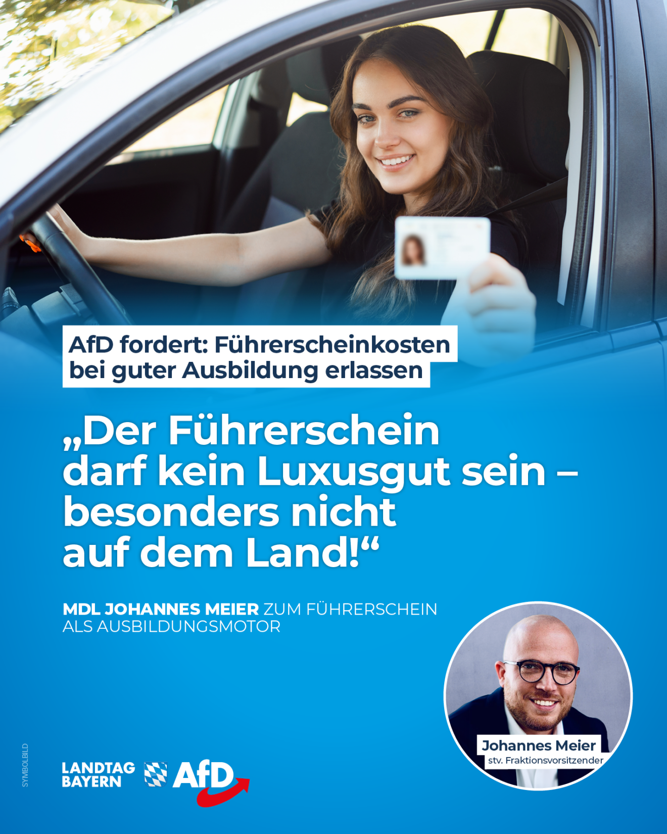 Die AfD-Fraktion tritt dem Fachkräftemangel in Bayern mit einem innovativen Anreizprogramm entgegen: Unser Vorschlag für einen „Ausbildungsbonus Führerschein“ sieht vor: Wer in Bayern eine mindestens zweijährige Berufsausbildung erfolgreich abschließt, soll die Kosten von bis zu 4.000 Euro für einen Führerschein der Klasse B über einen zinslosen Kredit der LfA Förderbank Bayern finanziert und bei einem guten Notendurchschnitt sogar erlassen bekommen. Leider wurde unser Antrag von den Kartellparteien abgelehnt.