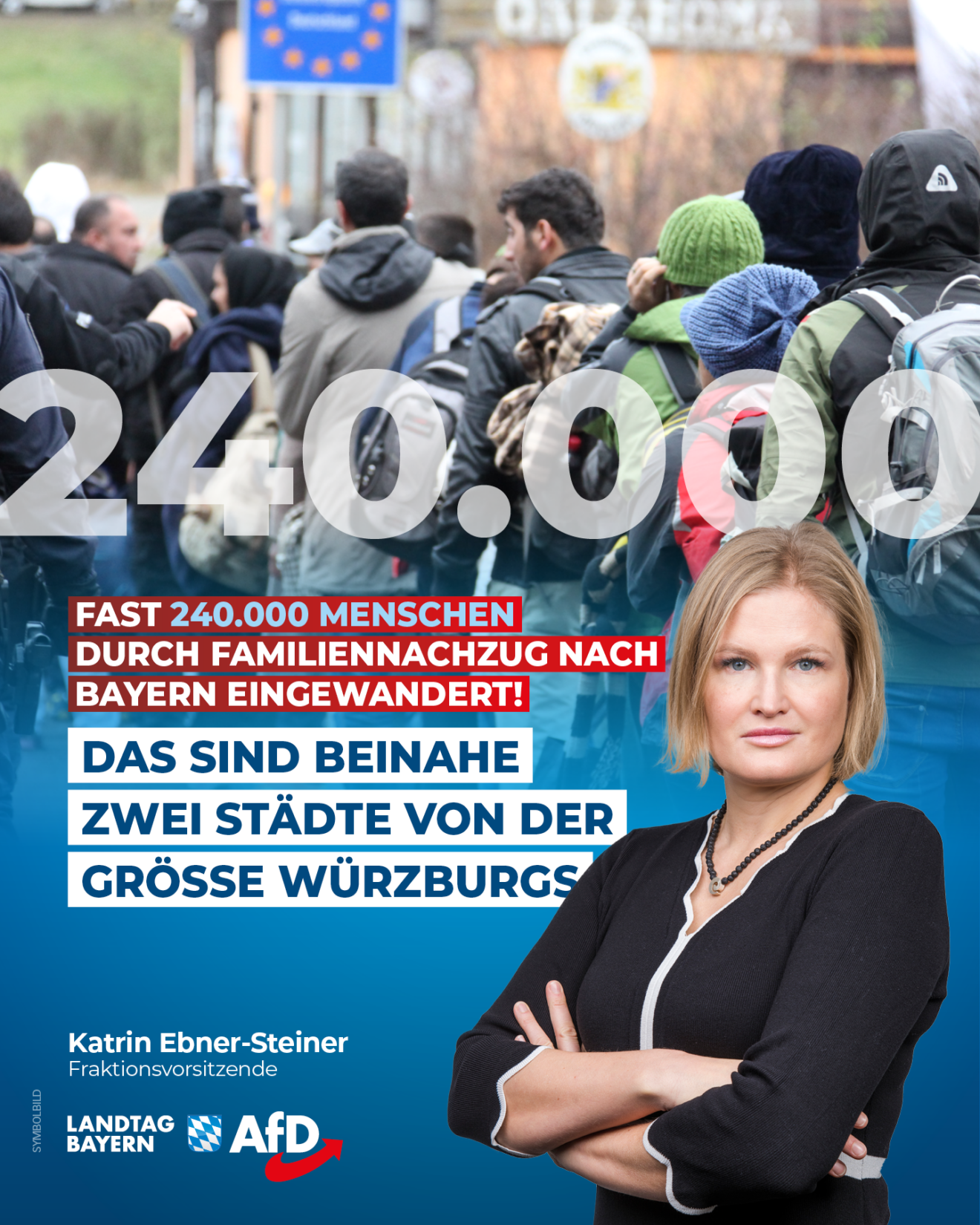 Die Bayerische Staatsregierung hat eine Schriftliche Anfrage der AfD-Fraktionsvorsitzenden Katrin Ebner-Steiner nach dem Familiennachzug in den Freistaat beantwortet. Die dramatischen Zahlen sind der Öffentlichkeit bislang nicht bekannt: Zum Stichtag 30.06.2025 waren 239.777 Personen im Ausländerzentralregister erfasst, die in den Jahren von 2014 bis 2024 im Zuge des Familiennachzugs eingereist sind.