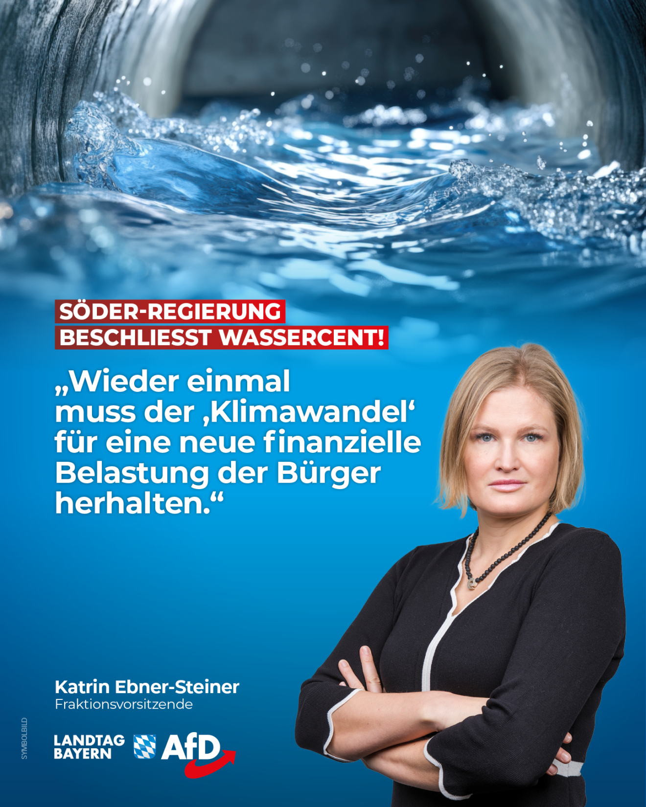 Die Bayerische Staatsregierung erhebt künftig den Wassercent: Ab Juli 2026 müssen Verbraucher zehn Cent pro Kubikmeter für die Entnahme von Grundwasser bezahlen. Ministerpräsident Markus Söder begründete den Wassercent mit dem „Klimaschutz“. Die AfD hat sich als einzige Partei im Bayerischen Landtag klar dagegen positioniert.